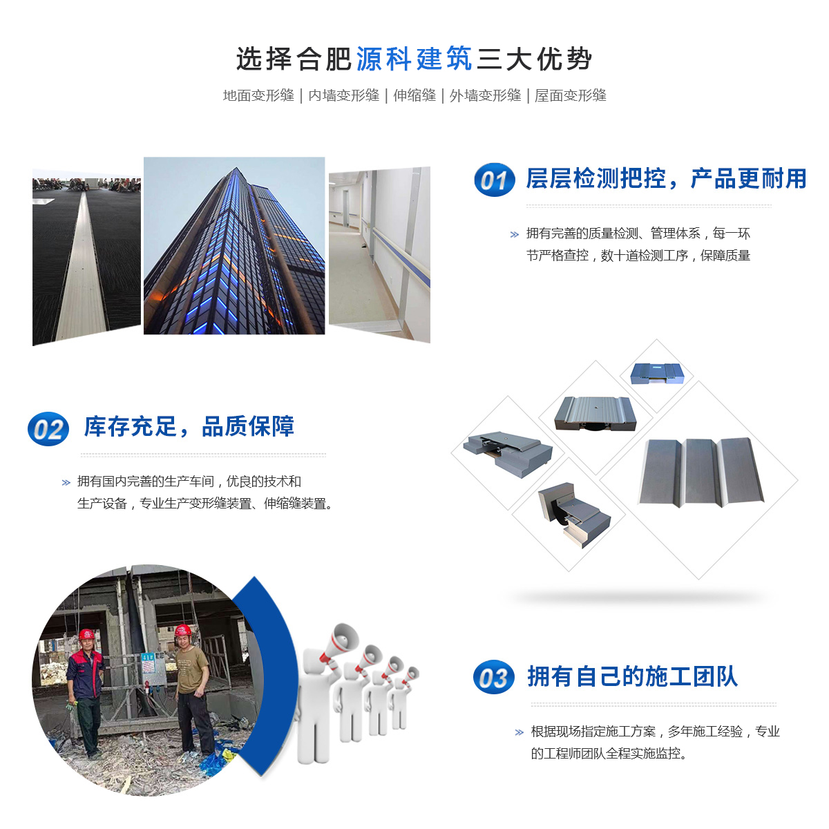 - 合肥源科建筑科技有限公司位于長三角城市群副中心的合肥,面向國內(nèi)外生產(chǎn)銷售是專業(yè)研發(fā)及產(chǎn)銷各種建筑伸縮縫、地面變形縫、內(nèi)外墻變形縫等裝置。參與了省內(nèi)大型工程(醫(yī)院、學(xué)校、工廠、大型商場超市等)建設(shè),是諸多建設(shè)單位和設(shè)計(jì)學(xué)院長期合作單位,在建筑變形縫伸縮縫行業(yè)樹立了自己的專業(yè)形象。本公司根據(jù)建筑業(yè)的發(fā)展和用戶的實(shí)際需要,深入研制出目前國內(nèi)新型的建筑伸縮縫裝置。按照使用部位分為四個(gè)類別:樓地面變形縫;內(nèi)墻、頂棚吊頂變形縫;外墻變形縫;屋面變形縫;按照變形...